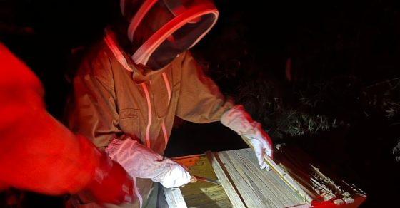 Les 11 et 12 novembre, un contrôle nocturne des ruchers a été mené sur les îles de Niodior et Falia, en présence du technicien apicole et des producteur·trices locaux·ales. Les équipes ont nettoyé les ruches envahies par d’autres insectes et examiné celles occupées par les abeilles. Les visites se sont montrées encourageantes : à Niodior, 21 des 25 ruches sont aujourd’hui colonisées par les abeilles, qui ont déjà entamé la fabrication et la fermeture des alvéoles abritant les futures colonies.